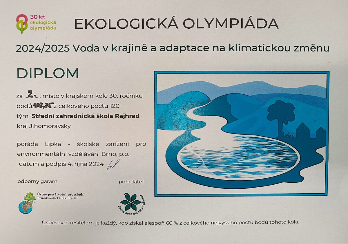 Naši studenti se zúčastnili Ekologické olympiády na téma "Voda v krajině a adaptace na klimatickou změnu".