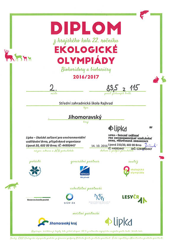 2. místo v jihomoravském krajském kole ekologické olympiády.